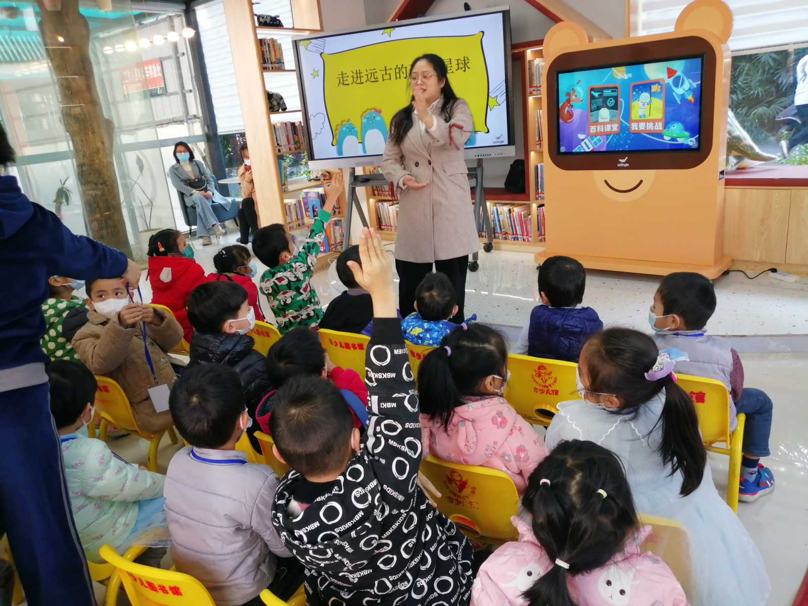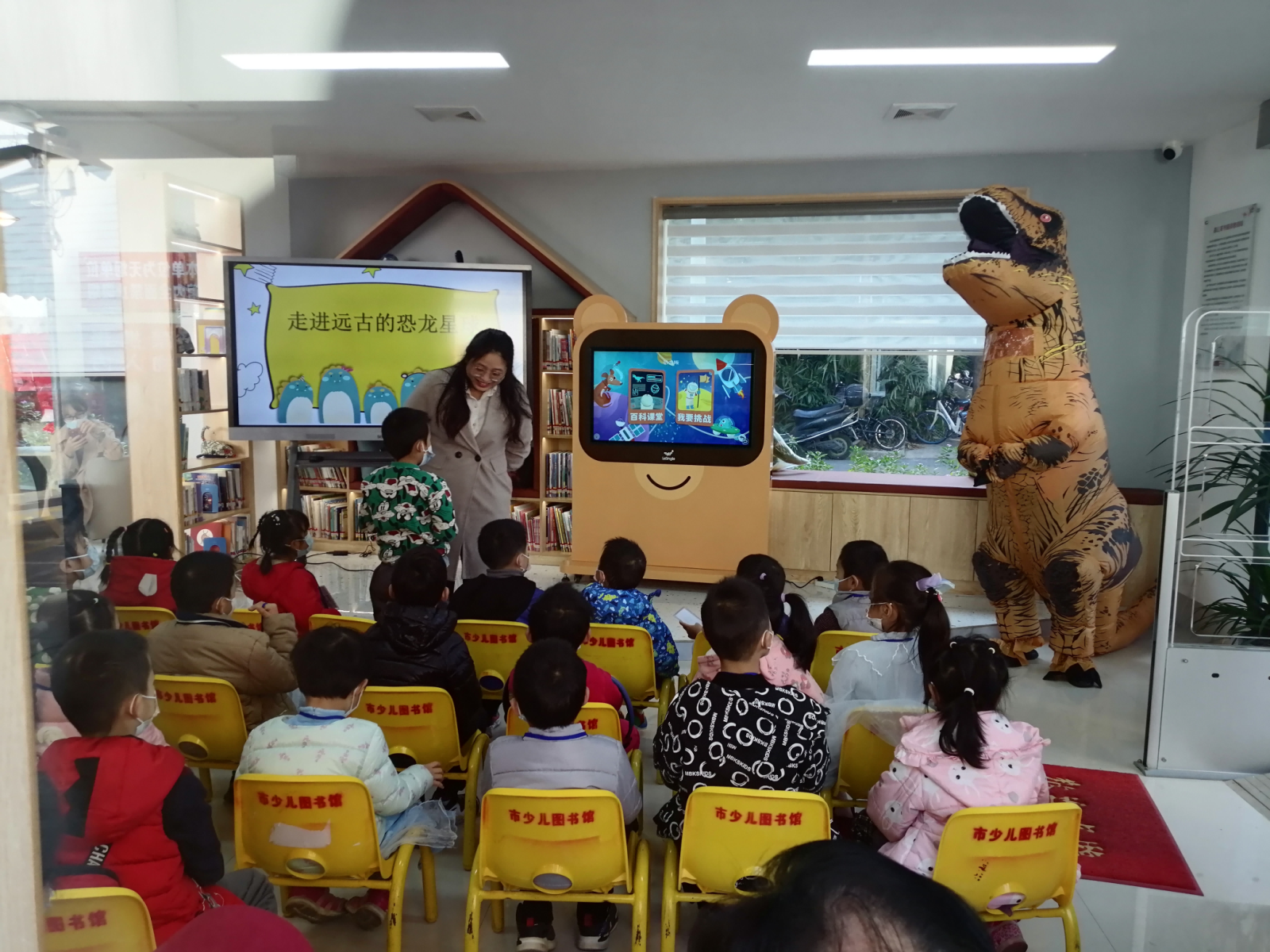 揭牌仪式当日还安排了“蒲公英书屋科普活动”,以“远古的恐龙星球”为主题,介绍3D互动百科学习机,教会小读者使用学习机查找科普内容。