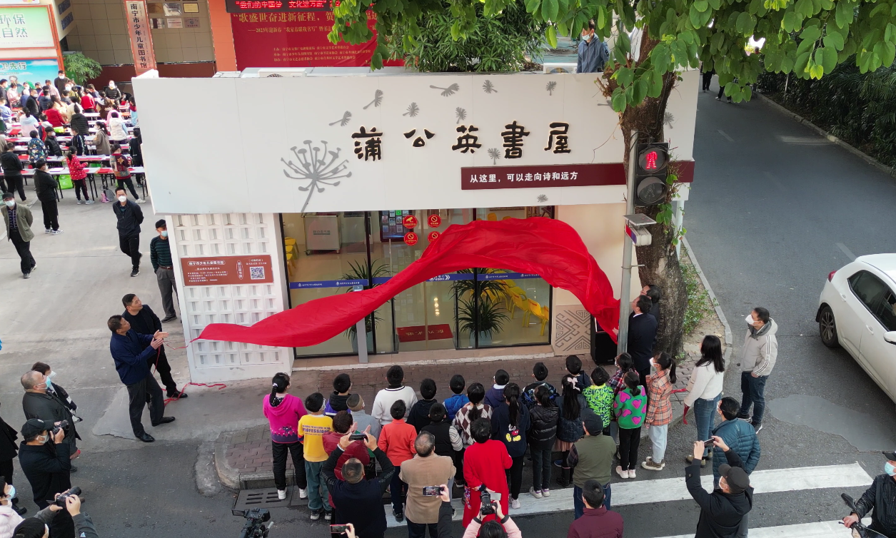 2023年1月7日上午,南宁市少年儿童图书馆举行了“蒲公英书屋”的揭牌仪式。“蒲公英书屋”是南宁市少年儿童图书馆最新打造的文旅融合+智慧+网红打卡的“无人值守,自助服务”阅读示范区,占地60平米,规模相当于城市书房,于即日起起开放试运行,开放时间为每天8:00至22:00。