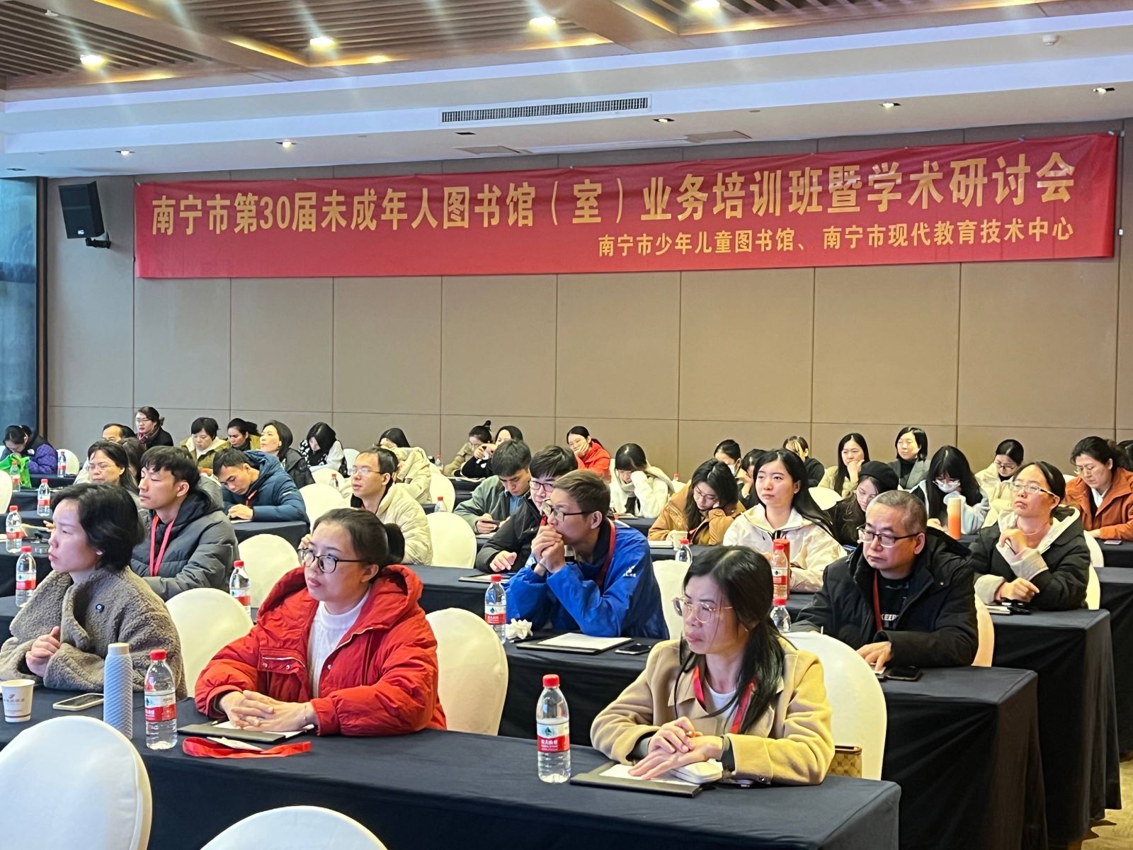2024年12月12日至12月13日,南宁市少年儿童图书馆、南宁市现代教育技术中心联合主办南宁市第 30 届未成年人图书馆(室) 业务培训班暨学术研讨会,来自南宁市教育局各直属学校(区分校区)图书馆(室)管理员共60余人参加本次培训及学术研讨。针对学校图书馆老师的实际工作需要,研讨会邀请到公共图书馆及学校等知名专家授课,分享阅读推广活动案例、职称评审分析、书香校园建设等内容,共同探讨书香校园建设工作,以发挥学校图书馆在书香校园建设的作用,提升学校图书馆内涵与品质,提升学校图书馆馆员的管理水平和业务能力。经过两天的学习与探讨,第 30 届未成年人图书馆(室)业务培训班暨学术研讨会获得了专家和全体学员的一致好评,取得圆满成功。