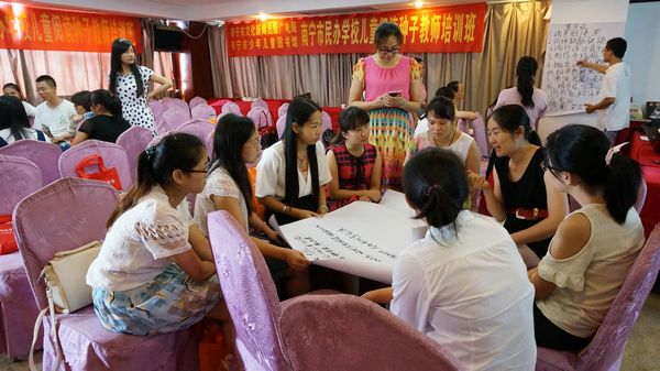培训班邀请了致立于开展儿童保护及儿童阅读推广工作的南宁市同心源社会工作服务中心黄玉群、廖凌、谢福华等担任授课老师。培训班内容包括介绍阅读素养、儿童阅读发展途径等理论知识,以及小学低、中、高年级阅读推广策略,分析如何在不同年级开展读书会。培训班还组织学员分组讨论,有针对性设计班级阅读活动方案。形式多样的教学手段,让在座老师对儿童阅读推广更深入的认识,让大家了解儿童阅读推广的重要性和可实践性,让民办学校的老师有意识和能力在班级里推动儿童阅读,形成有自己班级特色的阅读氛围。来自龙华学校、扶壮学校、振华学校、兴宁中学等多所民办学校,以及广西民族大学等高校社团志愿者约40人参加了培训班。