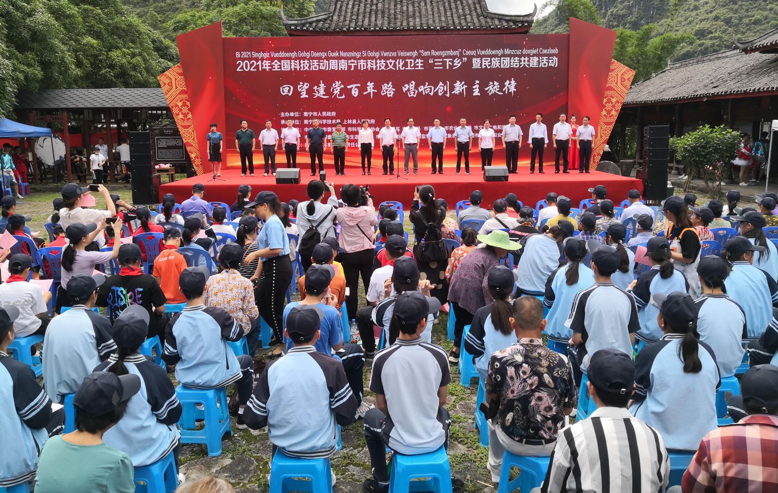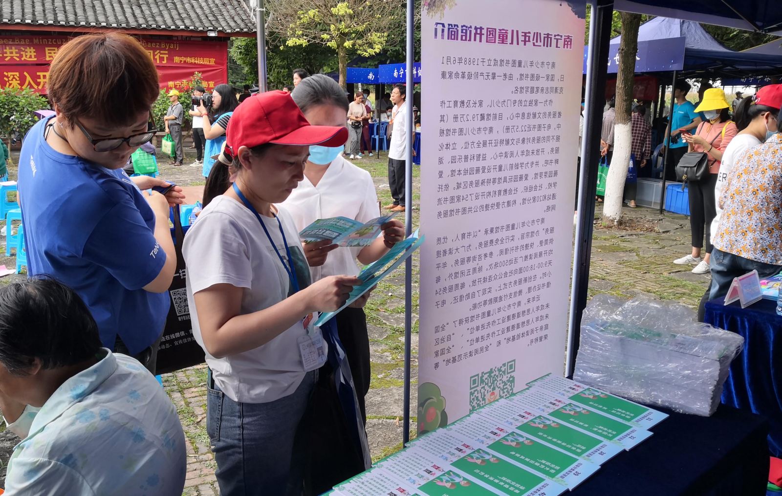 为了深入贯彻落实《关于开展2021年全国科技活动周南宁市活动方案的通知》精神,深入贯彻落实党的十九大和十九届五中全会精神,深入实施创新驱动发展战略,面向农村积极开展送政策、送文明、送服务活动,我馆积极响应南宁市委宣传部号召,5月26日上午一行4名工作人员随汽车图书馆来到上林县镇圩瑶族乡排红村排岜庄,参与“回望建党百年路 唱响创新主旋律”为主题的2021年全国科技活动周南宁市科技文化卫生“三下乡”暨民族团结共建活动。这次“三下乡”活动中,我馆汽车图书馆给市民带去了流通读物、公共图书馆服务指南及垃圾分类知识有奖竞答,让当地市民获得了不少公共文化服务方面的相关知识,促进了满足人民文化需求和增强人民力量相统一,为全面推进乡村振兴、增进民族团结提供了强大的精神力量。