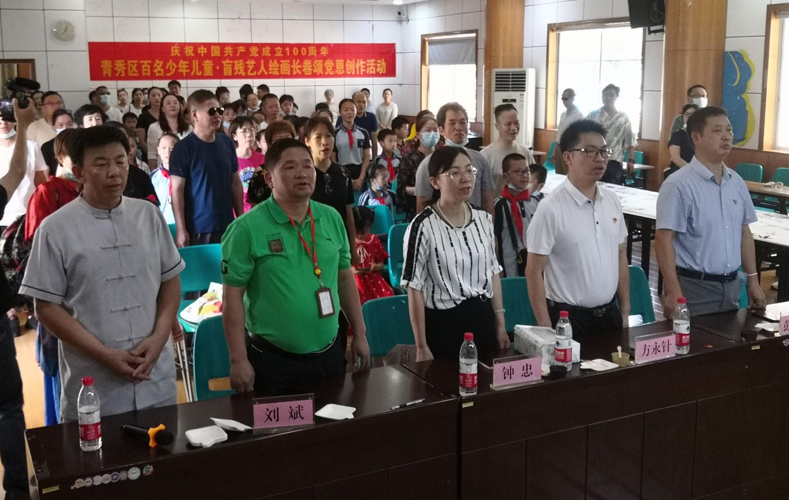 青秀区残联、文联等领导认真观摩盲人作画
