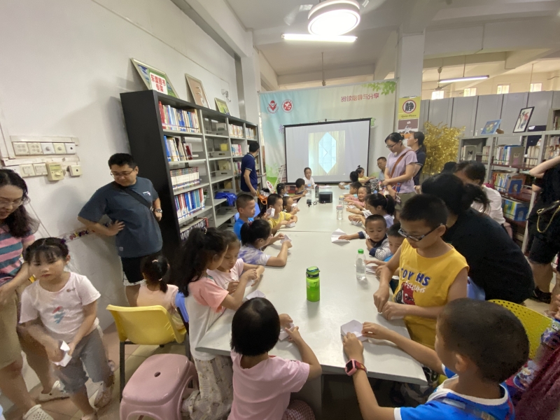 2023年7月9日少儿馆一楼悦阅会,姚岚姐姐继续延续以爱为主题的故事——《妈妈的红沙发》,故事从一场火灾把家里烧光开始,外租孙三代人努力攒钱重建家园的过程中,充满了积极乐观的精神,给人无限的感动和希望,最后姚岚姐姐还带大家折了个小提篮,20名孩子参与活动