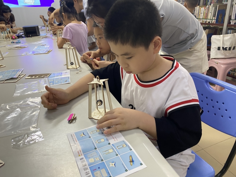 22023年7月2日下午悦阅会,游老师分享红军手枪故事绘本,一说到跟打仗有关的小朋友都兴奋起来,认真听老师讲解手工皮筋抢的制作原理,拿到材料就迫不及待做起来,哈哈,看,我也是小小神枪手!15名孩子参与活动