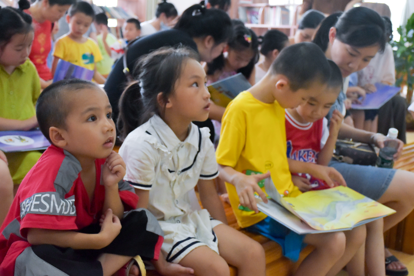 老师还与孩子们进行了丰富的互动环节,趣味知识竞答,小朋友积极参与,纷纷举手抢答有关祖国文学历史、百科知识和生活常识,趣味知识等使得现场气氛更加活跃。从而让孩子们感受到阅读累积知识的重要性。