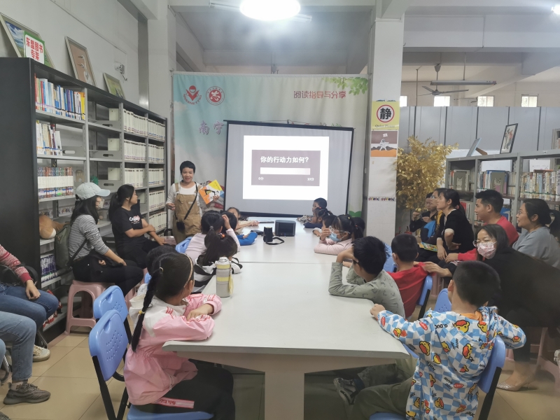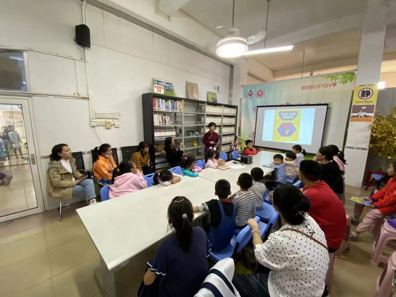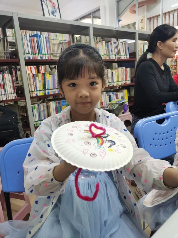 2023年10月15日,苗苗老师生动的讲述了《月亮上的野蜂蜜》绘本里的妈妈为了孩子可以做任何事,即便要去月亮上取一勺野蜂蜜。尽管过程曲折,也没有什么能阻挡她。这个神奇而美丽的故事赞颂了母爱的无限可能,也发出强有力的爱的告白—我爱你,可以为你去到月亮上,再回来。在场听课的小读者都被这个故事所感动到,感受到了母爱的伟大。苗老师课的最后还带领小读者们手工制作了爱的小雨伞