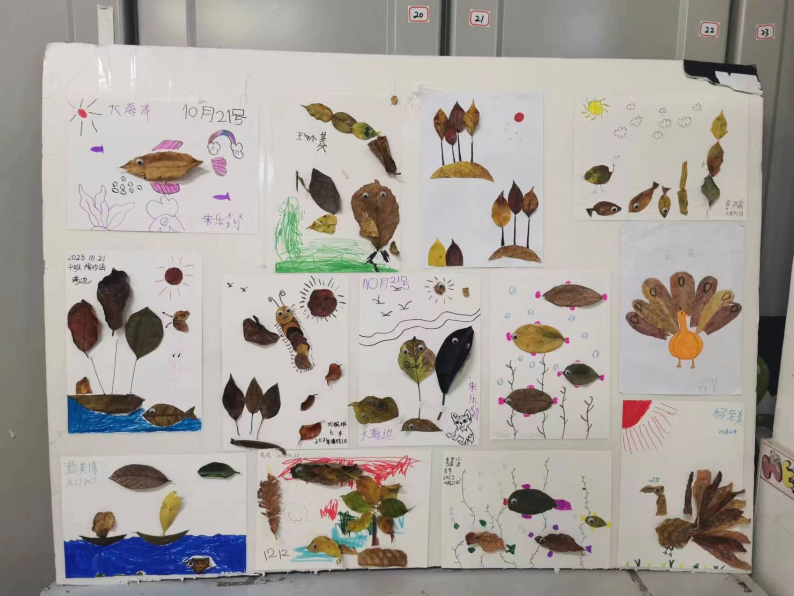 跟爸爸妈妈一起做落叶贴画