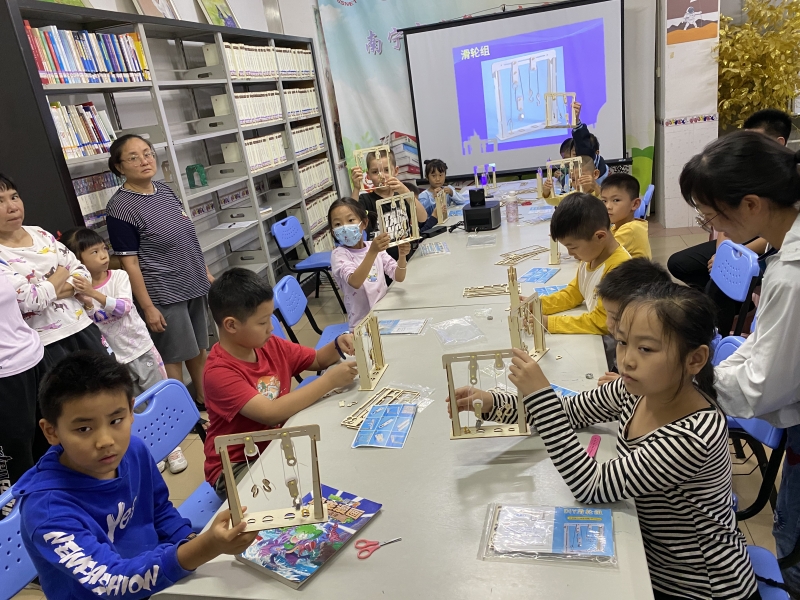 22023年10月22日少儿馆一楼悦阅会,游老师带领大家学习了滑轮组的原理是利用滑轮的旋转、数量的多少和绳子的长度来改变力的方向和大小。它的应用非常广泛,可以用于吊装重物、提升货物、拉动物体等,是一种非常实用的简单机械,可以完成一些力量较大的工作,减轻我们的劳动强度。游老师指导小读者们如何制作和使用滑轮组,以便更好地利用它的优势,还推荐了小读者《理科原来这么有趣》等书籍