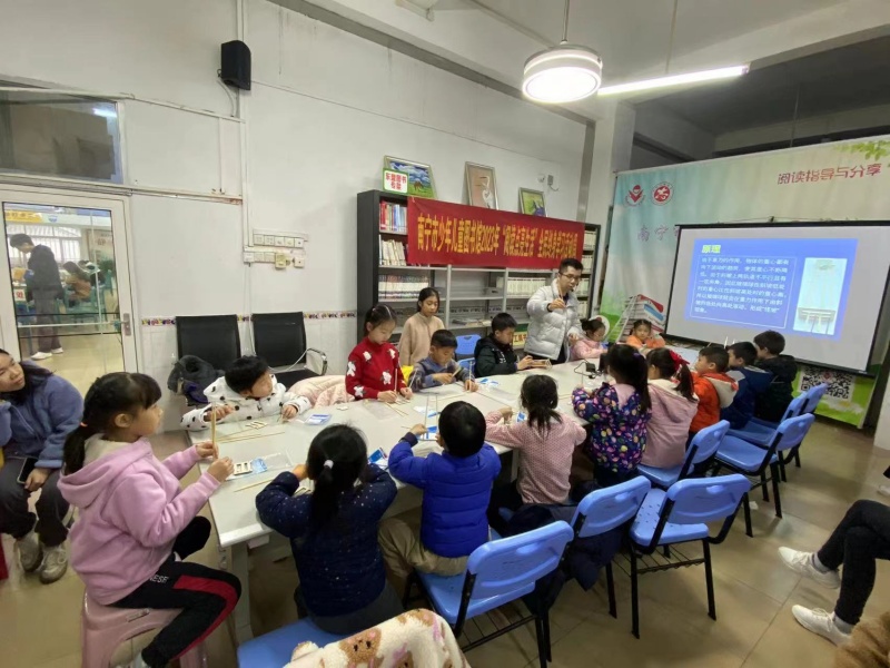 2024年1月7日悦阅会,游老师讲述磁力旋转笔的原理是利用磁力和磁悬浮技术。它的笔帽和架子顶部黏贴了一对互相排斥的磁铁,圆珠由磁力材料制成,当笔杆靠近磁性平台时,磁铁会产生磁场,圆珠受到磁力的作用,悬浮在磁性平台上方。同时,磁铁和圆珠之间的磁力也使得圆珠可以自由旋转。此外游老师推荐《怪兽学园》和《大数据》等书籍,小读者们能更深刻了解科学的魅力。最后分发了工具包,带领小读者们制作了磁力旋转笔