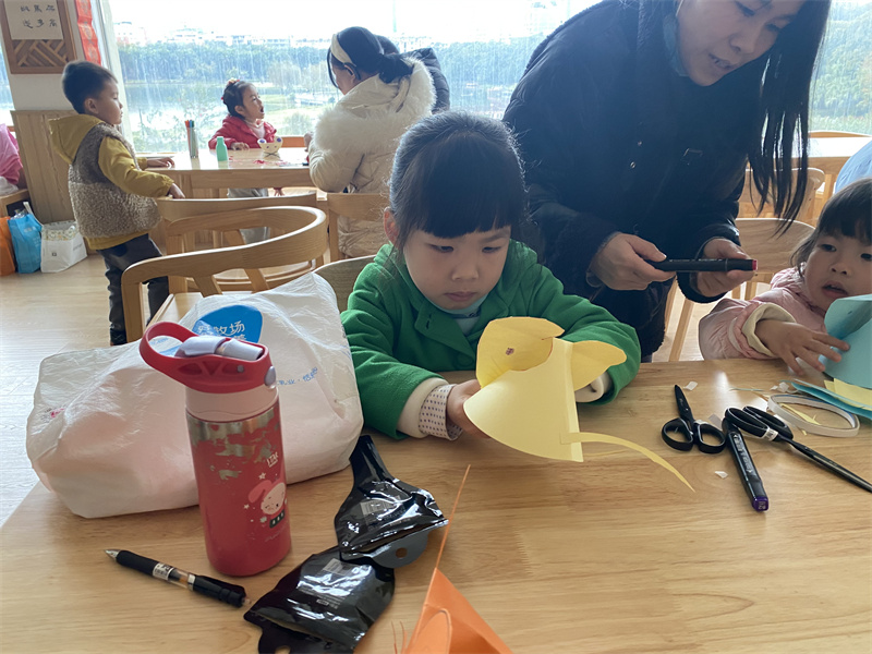 2024年2月25日湖畔书吧悦阅会,苗苗老师分享完《老鼠娶新娘》后,让小朋友们分享下感想,小朋友说每个人都有自己的优点和缺点,长处和短处。每个人都有别人比不上的本事,要相信自己!在延展阅读方面,苗苗老师建议家长除了寻找不同的版本故事外,还可以跟孩子讲述自己的婚礼,和孩子一起翻看相册,聊聊不同年代的婚俗,随后带领小读者们选自己喜欢的颜色卡手工制作了可爱的立体小老鼠,穿上绳子还可以当小帽子带在头上,12人参与活动
