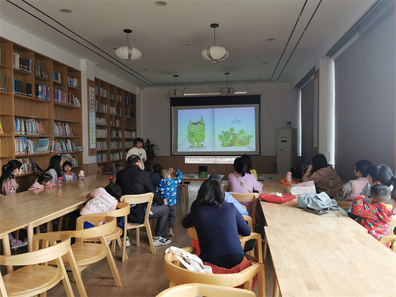 2024年4月20日一楼悦阅会,在一个月黑风高夜,样子凶恶的大灰狼潜进一个房子里,里面爸爸在给孩子讲故事,然后——他被故事迷住了,偷偷拾起故事书,到处找会认字的小动物讲故事给他听,土土老师把故事讲得跌宕起伏,小朋友们跟着惊呼或大笑,纷纷猜测大灰狼下一步要怎么做,最后还进行了看图猜书名,检验平日阅读量时刻到了,小朋友们也丝毫不怵,抢着回答,赢得了好多奖品