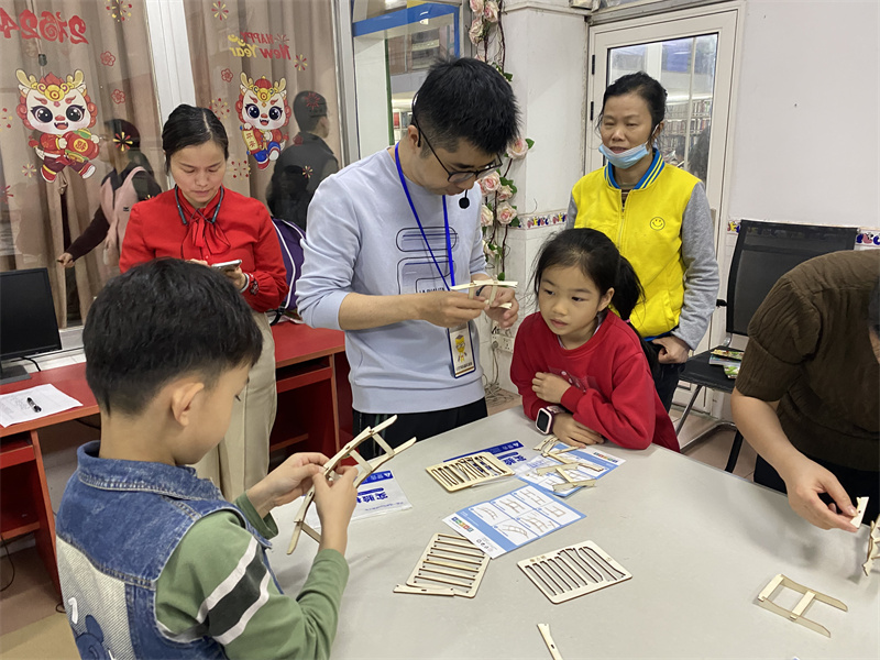 2024年3月17日一楼悦阅会,游老师带领小读者手工制作倍力桥,倍力桥是一种可迅速组合的人工便桥,它是利用物理力学原理,倍力桥的结构设计使得其具有简单而稳固的特点,使得整个桥梁结构能够承受更大的压力,在第二次世界大战期间发明,曾用于解决军队渡河的问题。在现代生活中,倍力桥常用于水灾或地震后,作为主要交通桥梁因故中断时的快速恢复手段。为了小读者们能更深入的了解建筑学,游老师推荐《万物里的科学—纸》《中国古代科技史》等书籍