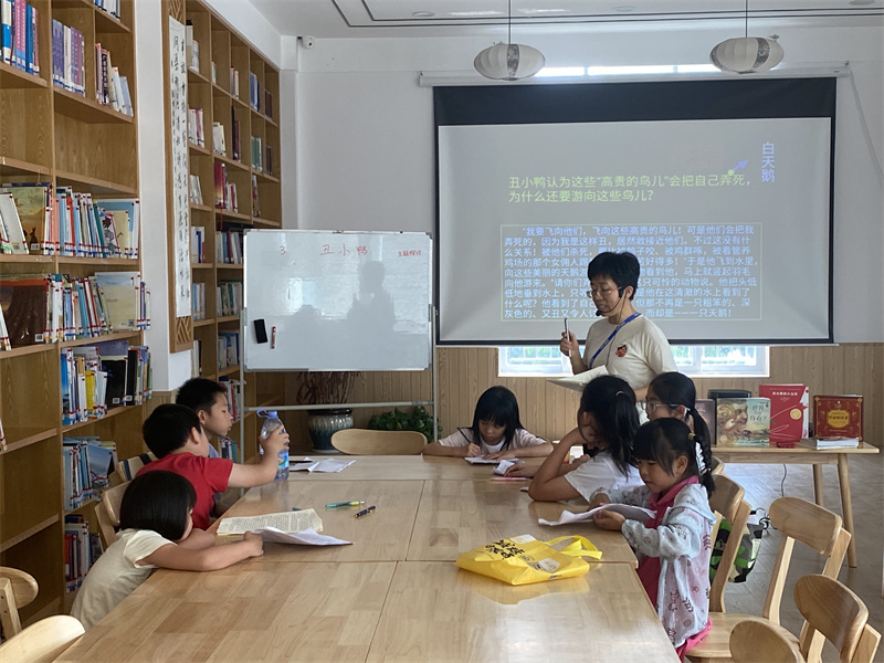 2024年3月24日二楼湖畔书吧悦阅会,苗老师带领小朋友开启了《丑小鸭》共读的第一课,邀请每个孩子通过朗读来表达对文本的理解,参与者从不到六岁的妹妹,到五年级的哥哥,在朗读过程中都有可圈可点之处:特别小的孩子能坚持到底,并且勇于尝试;大哥哥能做到表率,而且乐于助人;四年级的姐姐,二年级的妹妹,学龄前的小妹妹读来声情并茂,充分展示了她们对文本的理解