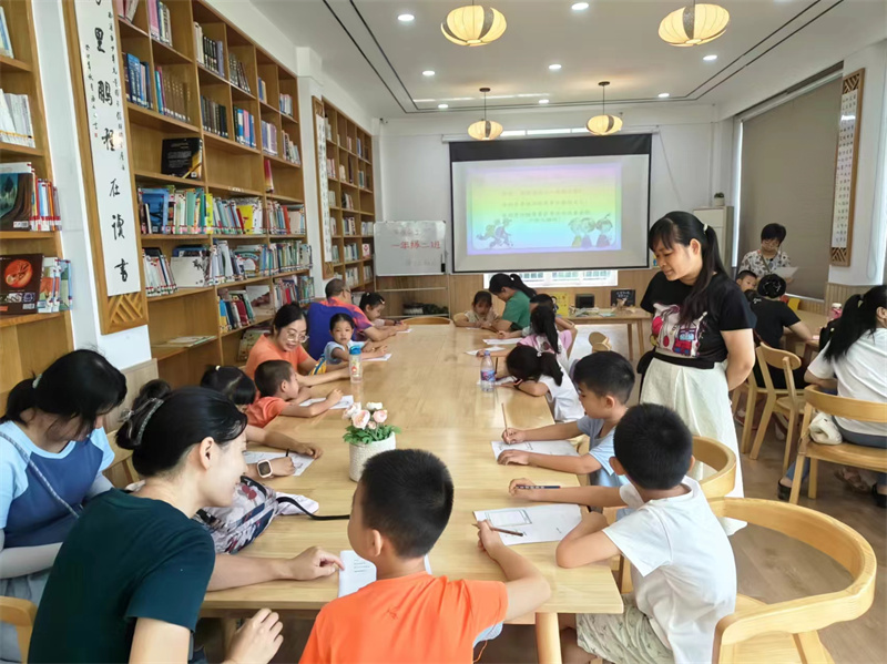2024年8月4日共15位读者参与了苗苗老师的桥梁书籍阅读分享《一年级二班》,这套书契合《小学入学适应教育指导要点》,做好入学的生活准备、情感准备和阅读准备。在真实的故事中找到成长共鸣,小朋友们能更好地融入集体和学校生活。课上苗苗老师询问小朋友们幼儿园和小学有哪些区别?如何在一年级交到更多的好朋友?上一年级需要准备什么?小读者们都能踊跃的举手回答。苗苗老师也推荐小读者们借阅我馆内书籍《上学到底需要什么》、《上学第一天》