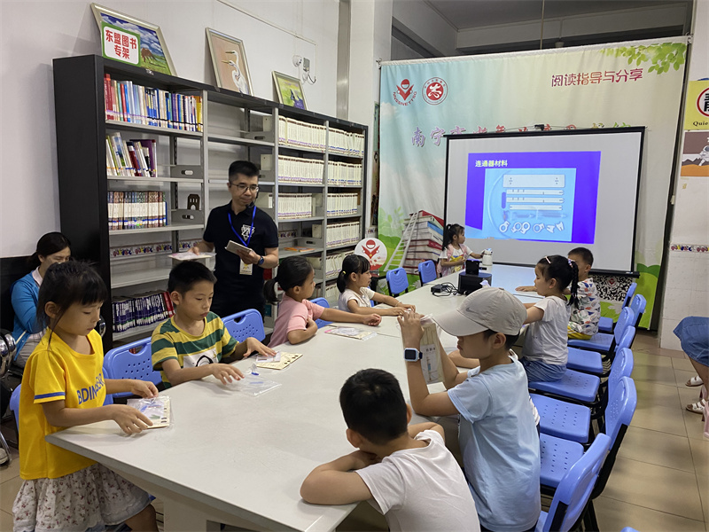 2024年8月25日共15位小读者参与了游老师的科普读物分享连通器的制作过程和原理。水平仪主要用于检验各种机床和工件的平面度、直线度、垂直度及设备安装的水平位置等。通过实验让小读者们了解到连通器的原理体会到科普的趣味性,爱上科学。游老师课上还推荐了小读者们踊跃借阅《水》《365个科学实验》等书籍