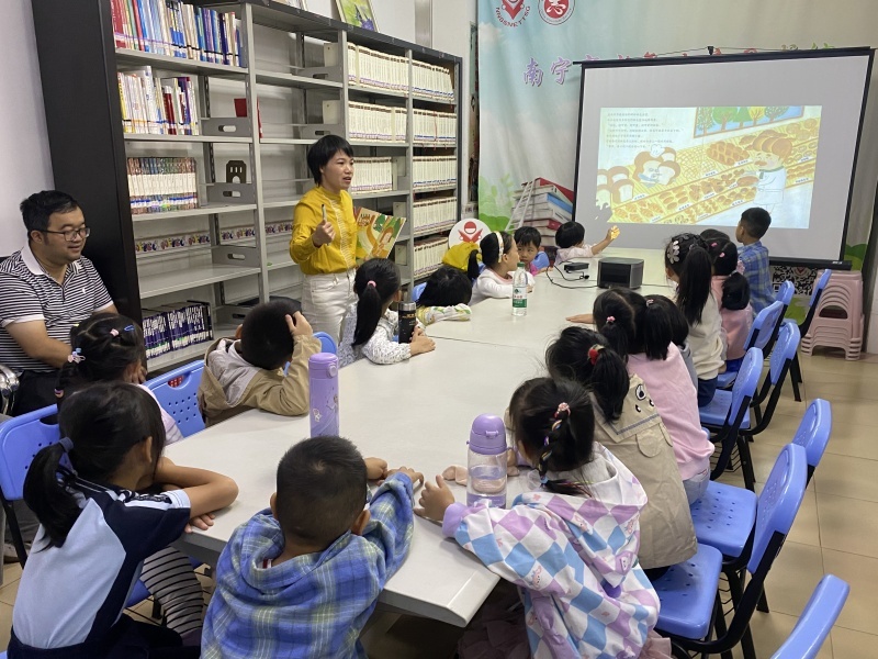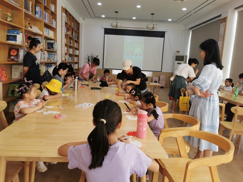 2024年11月17日二楼湖畔书吧,苗苗老师带来绘本故事《七个好朋友》,在书里,中国传统益智玩具“七巧板”化身为七个可爱的小精灵,演绎了一场热闹非凡的纸上舞台剧,展现了千变万化的奇妙创意,也阐述了友谊的真谛。孩子们一边听故事,一边用下发的七巧板演示书中的全部情境。读故事的孩子一边感受七个小精灵的欢乐与悲伤,同时更是在不知不觉中体会了七巧板空间构思的精妙