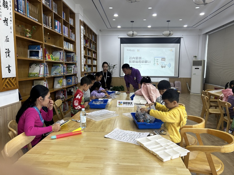 2024年11月30日湖畔书吧悦阅会,今天的少儿编程是制作电风扇,乐老师给小朋友们介绍电机,电源,以及教具,让其动手搭建了一个电风扇,并通过模块化编程,实现机器人动起来,真是又烧脑又好玩