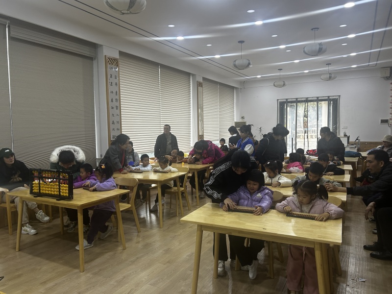 2024年12月14日二楼湖畔书吧,悦阅会给4-5岁的小朋友体验了新的课程——珠心算。在数字时代,我们依然珍视那些历经岁月洗礼、代代相传的文化遗产。珠心算,作为中国非物质文化遗产之一,不仅是一种计算技巧,更是一种思维的艺术。这次课程普及珠心算知识,认识算盘并用其进行加减珠算,体验其中的乐趣,课堂最后邀请了两位珠心算小传承人进行了2位数10笔听心算、3位数10笔闪电心算和听心算表演,让在场的家长和小朋友近距离的感受到珠心算的神奇和魅力