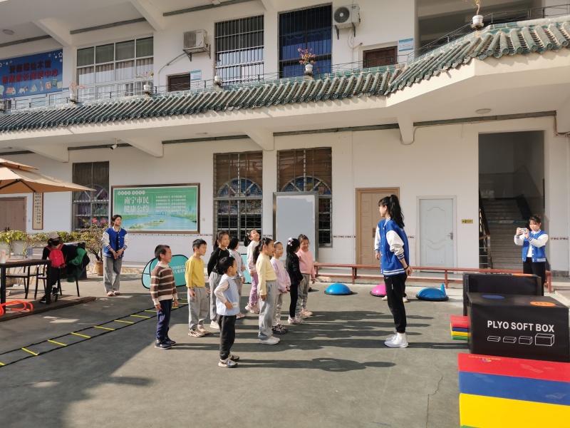 2024年12月15日上午二楼露台,这次悦阅会的主题是体适能训练,通过一系列科学的动作和训练计划,帮助孩子们全面发展身体素质,让小朋友的体质更强健,意志也更坚韧。这次课程练习了跑酷基础动作、攀爬练习、手眼协调练习、踝关节稳定练习,课程丰富有趣,让孩子们在玩中锻炼,锻炼中玩,体验到了专业运动的乐趣