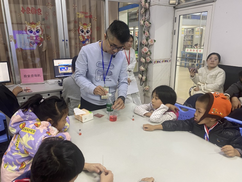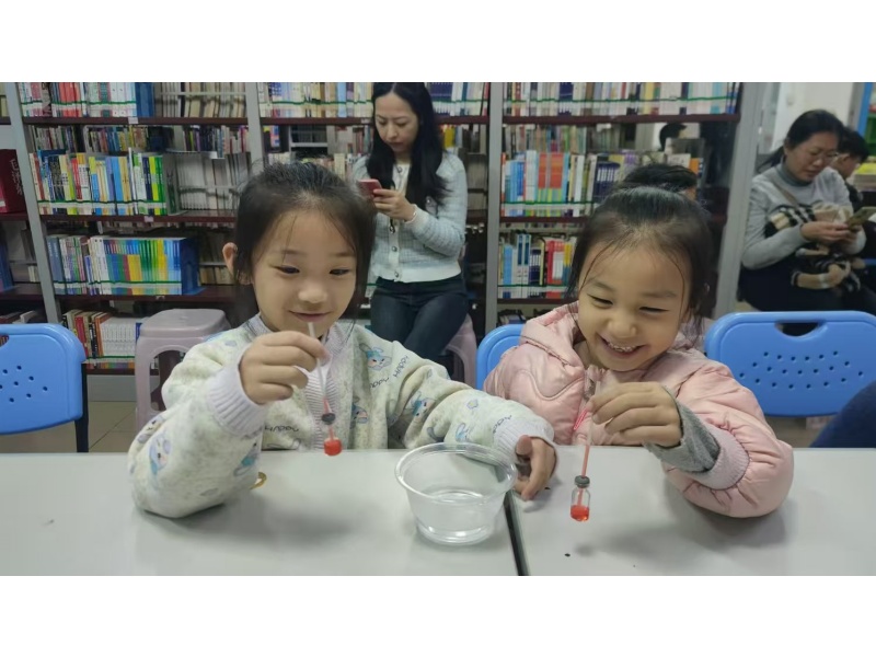 2024年12月8日共15位小读者参与游老师科普读者分享手工制作模拟温度计.它的制作原理是1.西林瓶内的空气受热后,分子活动加快并膨胀,压力加大,把瓶内的水压进吸管里:2.吸管里的水位受压力增强而上升;冷确后压力变小,水位下降。老师提醒小朋友拿西林瓶时不要举起玩耍,因为是易碎品,小朋友都能静下来认真小心完成制作温度计。老师推荐小读者们课后可以借阅馆内《了不起的古代发明》、《课外实用发明指南》、《小鹦鹉变魔术》等实用发明书籍开拓小读者对于科学的启蒙认知