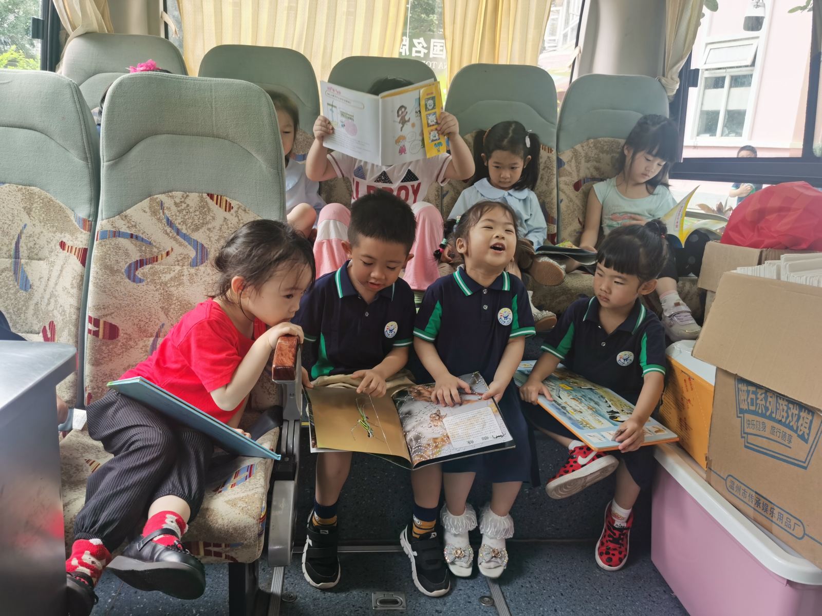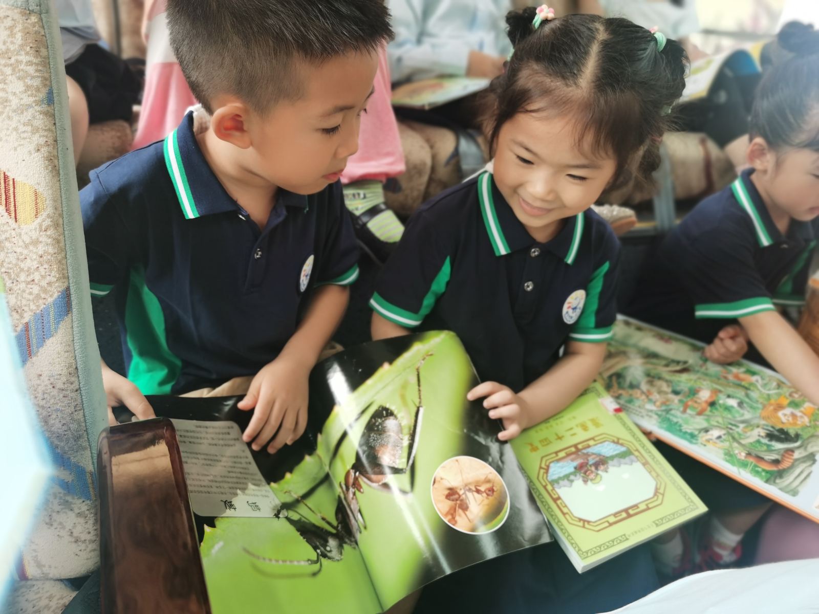 小朋友分享着自己喜爱的书籍给同伴们