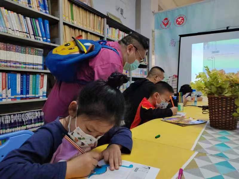 5月21日上午十点半,悦阅会学龄前绘本阅读指导活动 《大大的朋友 小小的朋友》寓教于乐,手指操,绘本导读,给恐龙画上自己喜欢的颜色,15名幼儿及家长畅享在阅读的快乐之中。