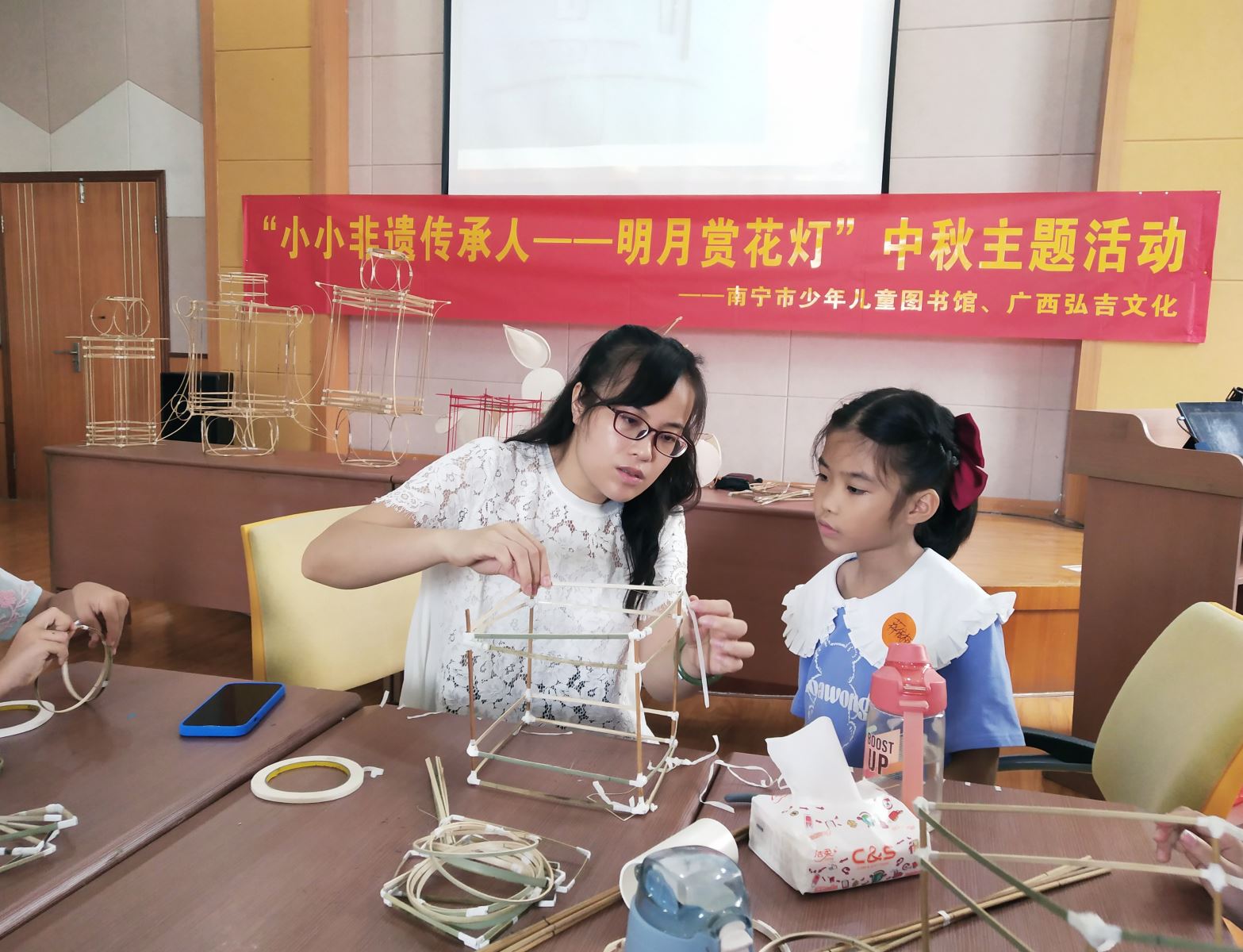 南宁市少年儿童图书馆“非遗传承·成长相伴”系列活动为培养读者们更好的体验中秋节庆文化,于2022年8月27日至9月4日特别开展“小小非遗传承人”花灯制作活动。