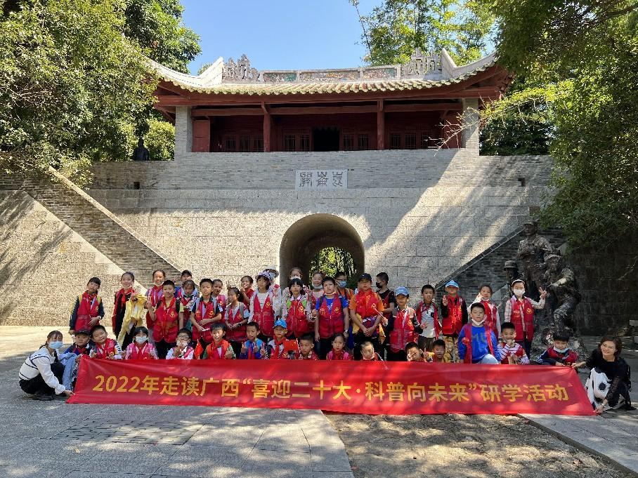 为迎接二十大的召开,普及青少年科普教育,营造首府少年儿童红心向党的热烈氛围,2022年10月15日由广西南宁市文化广电和旅游局主办、南宁市少年儿童图书馆承办的“喜迎二十大,科普向未来”党史科普研学活动在昆仑关战役博物馆顺利举行,40余名小读者参与本次活动。