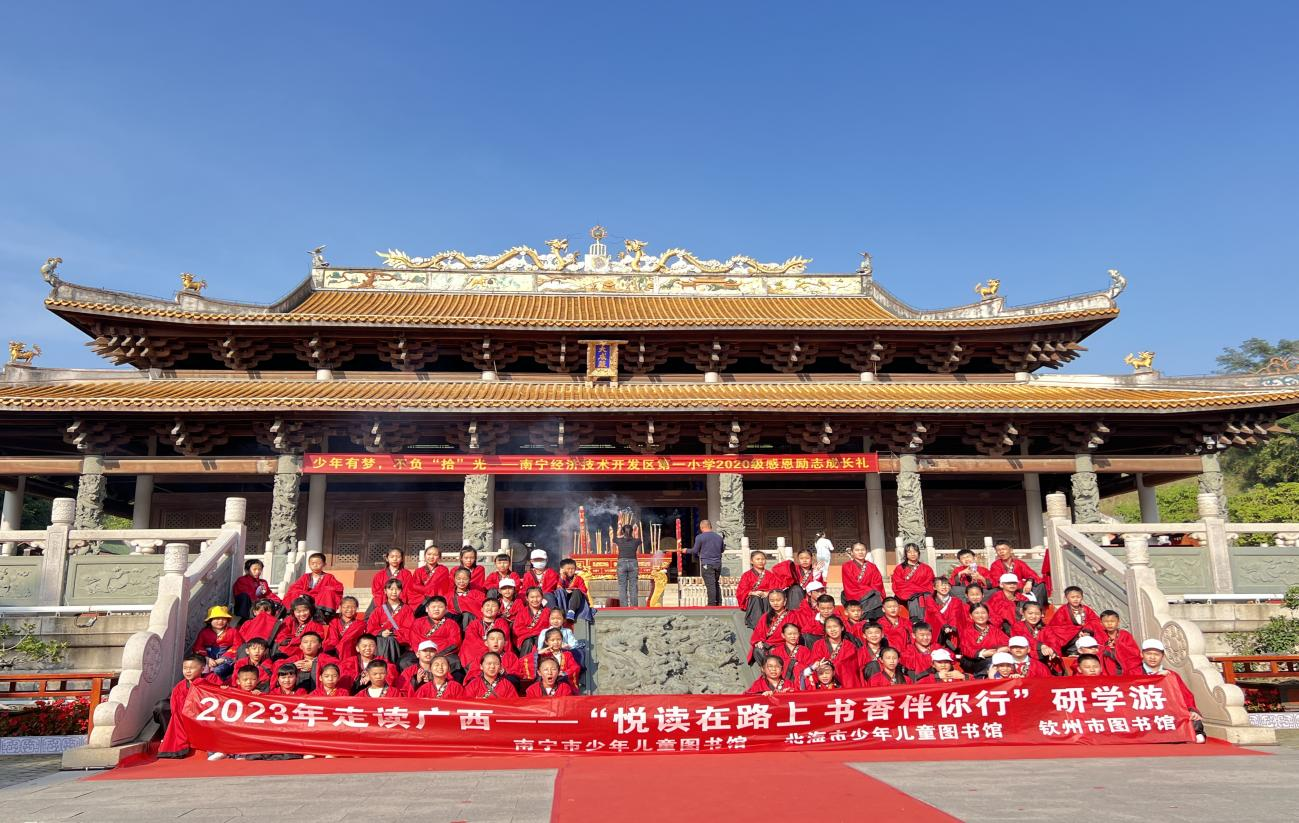为深入贯彻落实习近平总书记新时代中国特色社会主义思想及关于推进全民阅读、建设书香社会、创办儿童友好城市等重要指示精神,打造“走读广西、研学旅行”的品牌研学活动,南宁市少年儿童图书馆、北海市少年儿童图书馆、钦州市图书馆于2023年11月25日-26日联合开展2023年走读广西——“悦读在路上 书香伴你行”研学游活动。