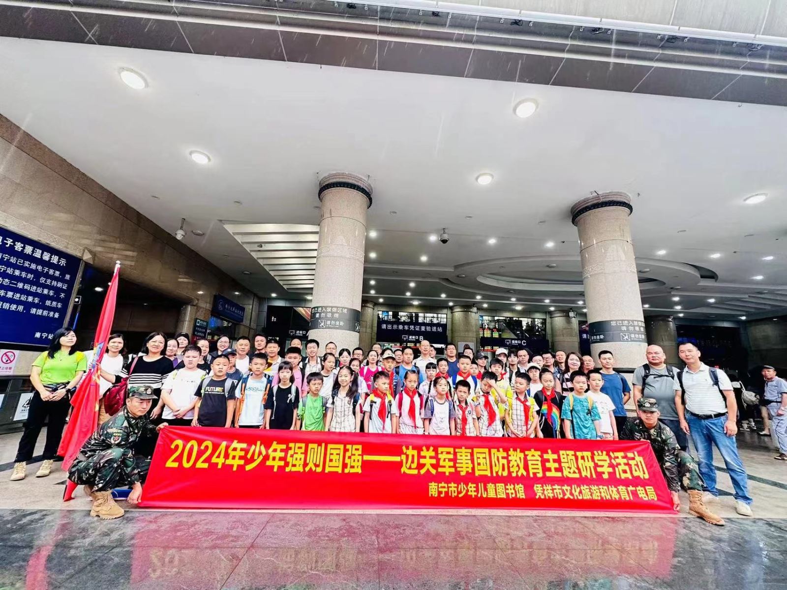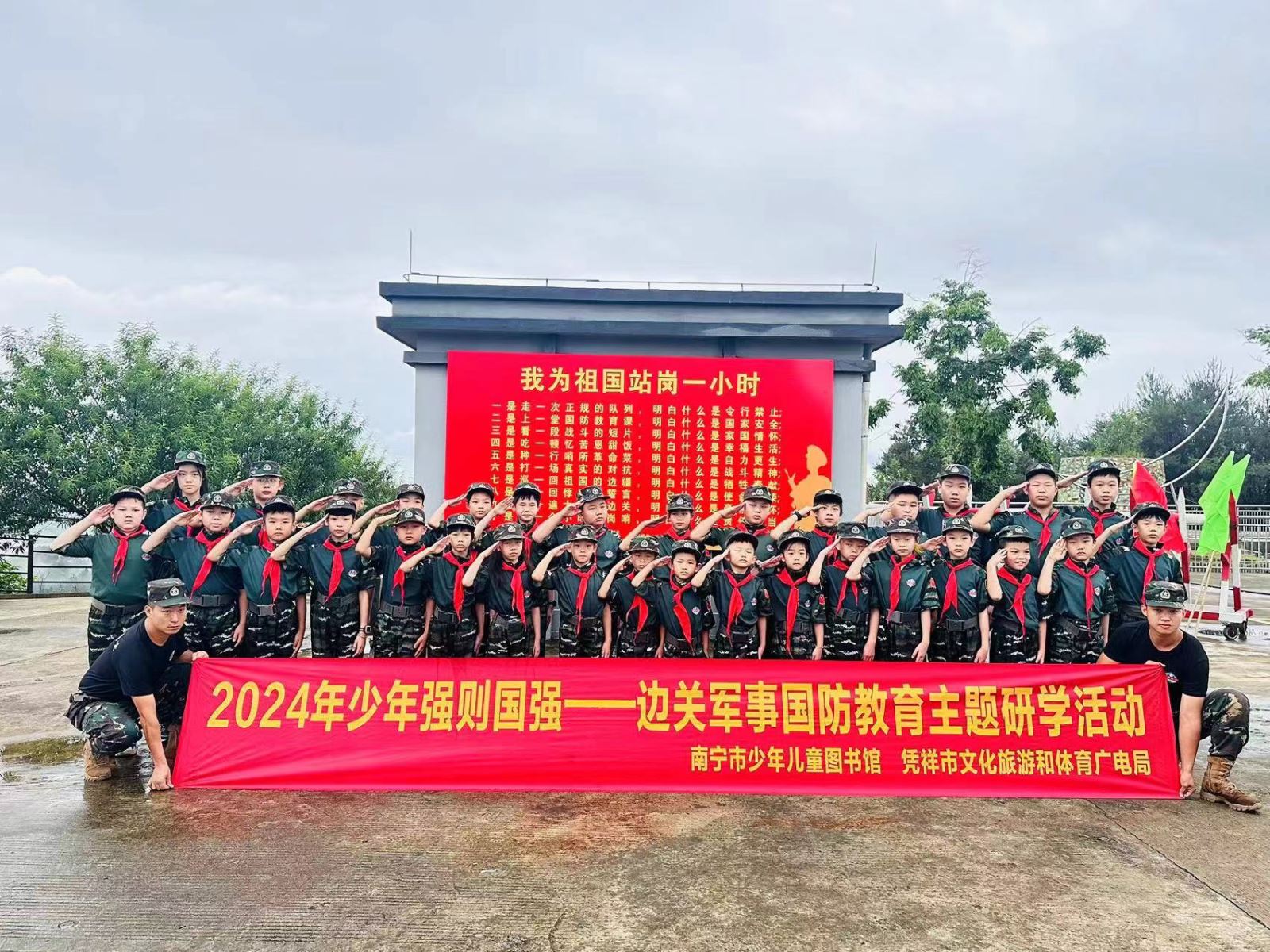 为铸牢中华民族共同体意识,激发少年儿童的国防意识、爱国意识,培养他们的自尊自强自立精神,坚定理想信念,弘扬爱国精神,南宁市少年儿童图书馆与凭祥市文化旅游和体育广电局于2024年6月8日至9日共同举办了“少年强则国强”凭祥边关军事国防教育主题研学活动。