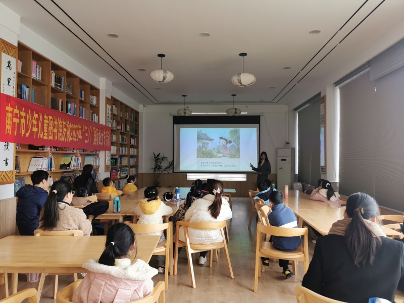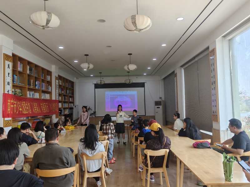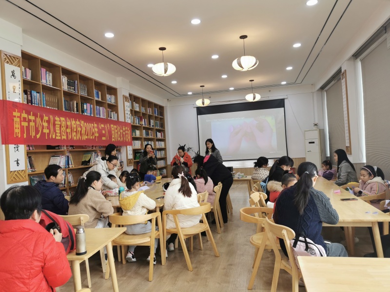 2025年3月23日下午,广西艺术学院学生志愿者过来我馆开展主题为“音乐为书籍插上飞翔的翅膀”音乐+阅读活动,跟孩子一起唱歌跳舞,合着音乐旋律,小朋友们分享自己最喜欢的图书,合作扮演图书里的故事,爸爸妈妈也参与其中,一起加油一起玩,不亦乐乎