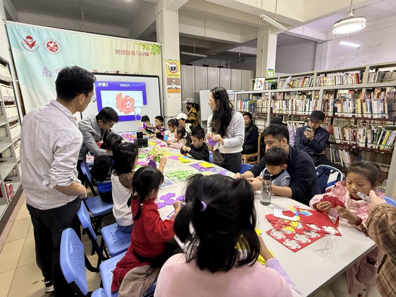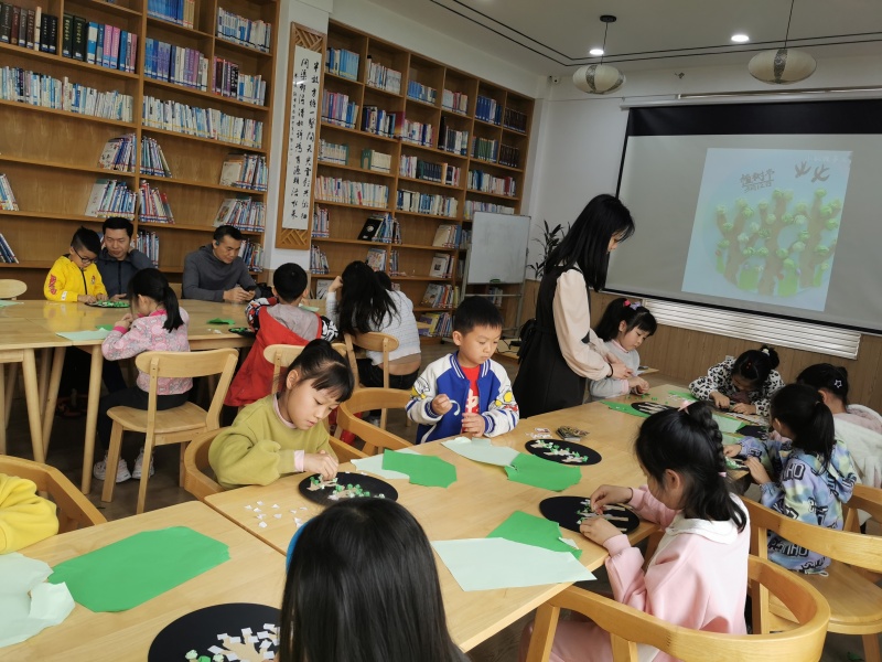2025年3月15日,正值植树节,湖畔书吧悦阅会开展“悦”读春天,播种绿色——绘本故事分享会。活动现场,志愿者老师为小朋友们带来了《多多老板和森林婆婆》和《大熊抱抱》两本充满童趣和环保意义的绘本故事,“森林婆婆的头发为什么是绿色的呢?”“大熊为什么要抱抱大树?”……在志愿者老师生动活泼的讲述中,小朋友们沉浸在奇妙的绘本世界里,积极思考,踊跃发言,争先恐后地分享着自己对故事的理解和对植物的喜爱。故事结束后,小朋友们在老师的指导下,和爸爸妈妈一起动手制作了充满创意的植树节手工。一张张彩纸在孩子们的手中变成了生机勃勃的小树,一颗颗童心在亲子互动中种下了绿色的希望