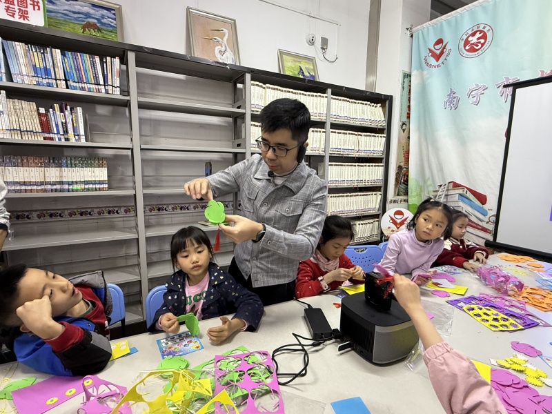 2025年03月16日下午,游老师跟小朋友讲述绣球的历史,作为一种独具特色的民间手工艺品,它不仅是壮族青年男女表达爱情的方式,还是传递祝福和吉祥的信物,延伸到介绍壮乡习俗,最后一起制作了一个个色彩缤纷的绣球,推荐《科学家的秘密武器》、《发明家的疯狂实验》等相关书籍