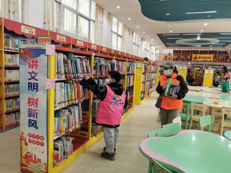 2025年3月31日少儿图书馆在一楼未成年人阅读中心举办第三期“书香润童心·大手拉小手”亲子志愿者活动,7组家庭在老师的指导下,准确无误地把书“送”回了家,并把书架整理得整整齐齐,还能回答读者的咨询,真是太棒了!