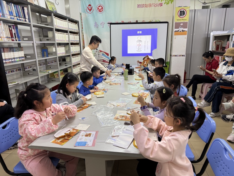 2025年03月02日下午,小朋友们一边认真地听游老师讲解,一边制作走马灯,别以为只是普通灯笼,它的原理和近代的燃气轮机是一样,通过蜡烛燃烧产生热气流,驱动灯罩顶部叶片带动轮轴或灯罩转动,上面的剪纸就跟活了一样动起来。走马灯又叫跑马灯、串马灯。公元1000年汉人就发明了走马灯。走马灯古称蟠螭灯(秦汉)、仙音烛和转鹭灯(唐)、马骑灯(宋),汉族特色工艺品,亦是传统节日玩具之一,是元夕、元宵、中秋等节日的标配。老师希望小读者们课后可以借阅馆内《越做越好玩的科学》、《千姿百态的月亮》、《专注力天才玩出来》等书籍,从玩的过程,更深刻了解到科学